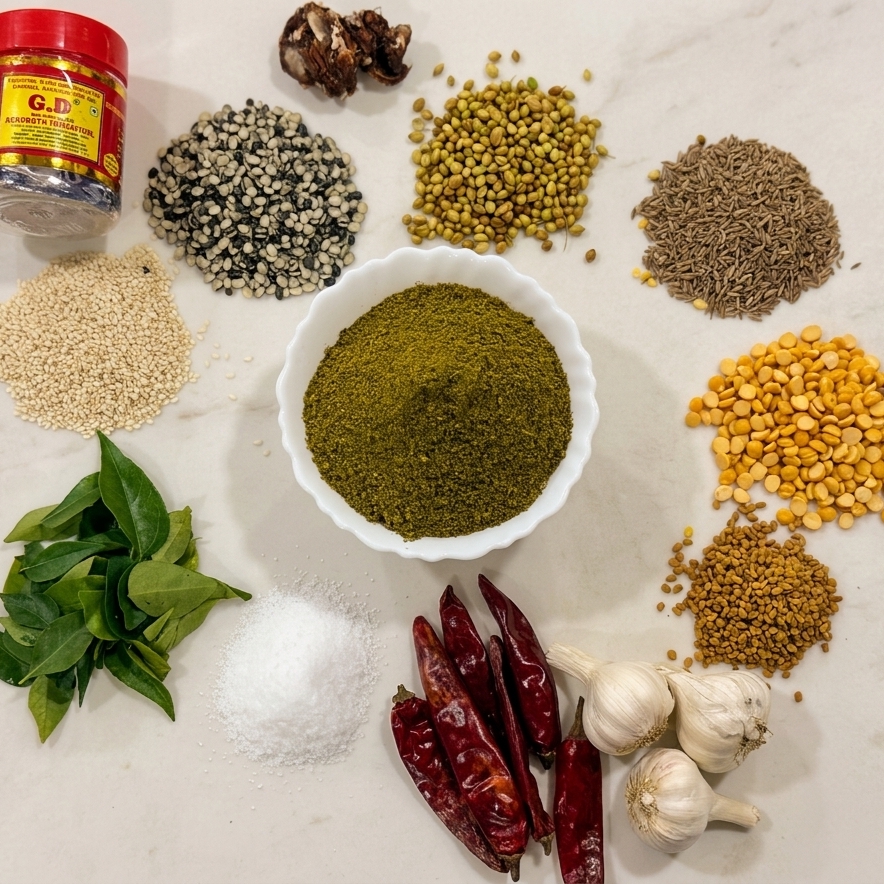 Prepared using authentic homemade recipes and processed under strict hygiene standards, our curry leaves podi delivers the perfect balance of taste, nutrition, and quality in every spoon.